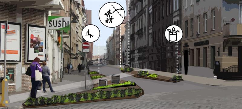 – Proponujemy, aby była to przestrzeń współdzielona przez pieszych, rowerzystów i kierowców. Wzbogacona meblami miejskimi, na przykład ławkami, urozmaicona i przyjazna zielenią. Miejsce spotkań okolicznych mieszkańców, przyciągające turystów – mówi Piotr Czypicki, prezes SENS-u.
