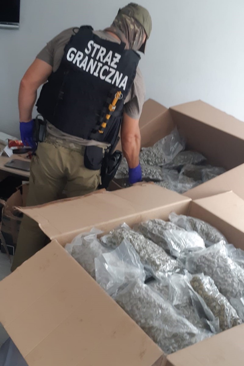 W trakcie wspólnych działań funkcjonariusze Podlaskiego Oddziału Straży Granicznej oraz Placówki SG w Szczecinie znaleźli i zabezpieczyli duże ilości wyrobów narkotycznych. Podczas przeszukania mieszkania i auta należącego do 24-letniego szczecinianina funkcjonariusze natrafili na ponad 70 kg ziela konopi, marihuanę oraz substancje psychotropowe w postaci mefedronu. Łączną wartość ujawnionego towaru oszacowano na blisko 3,2 mln zł. Zabezpieczono także dużą ilość gotówki. W sumie w mieszkaniu znajdowało się ponad 64 tys. zł i blisko 10 tys. euro.