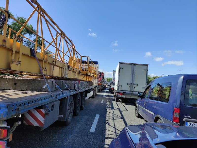 Ogromna kolejka na przeprawie promowej w czwartek przed południem w Świnoujściu. Ma długość ponad dwóch kilometrów.