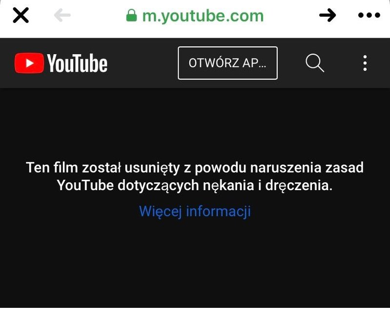 W środę po południu film został usunięty "z powodu naruszania zasad You Tube dotyczących nękania i dręczenia w sieci".