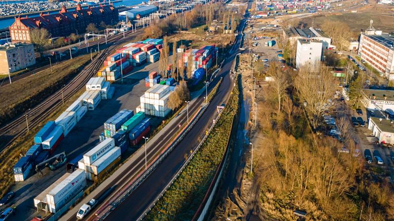 Zmiany w portowej części Szczecina są trudne do zauważenia. Jedna z dużych inwestycji drogowych realizowanych na uboczu jest jednocześnie jedną z tych najważniejszych. W rejonie ulic Hryniewieckiego i Logistycznej powstaje duże rondo, zmienia się też układ drogowy, która poprawia dojazd do portu.