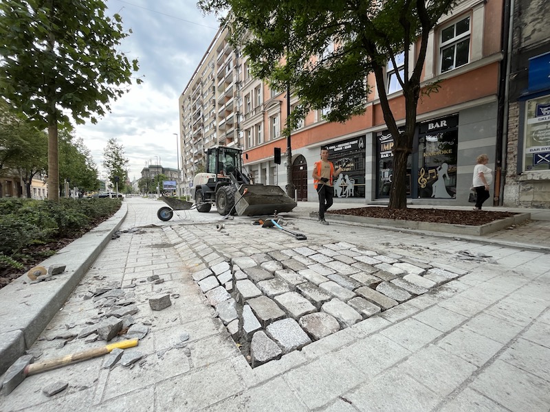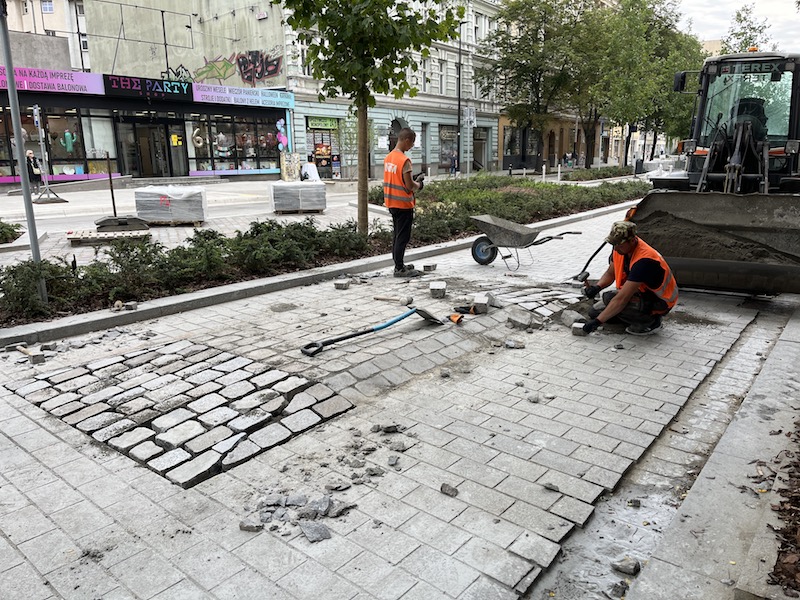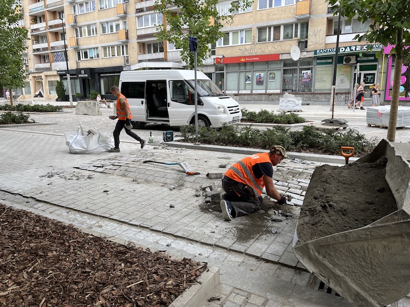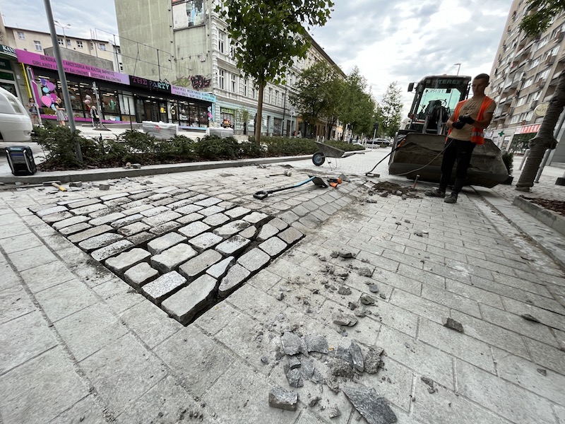 W piątek (18 sierpnia) trwała przebudowa kamiennych spowalniaczy w al. Wojska Polskiego. Ich nowy profil ma nadal zmuszać kierowców do zmniejszania prędkości, ale samo pokonanie progów powinno być łatwiejsze i bezpieczniejsze.