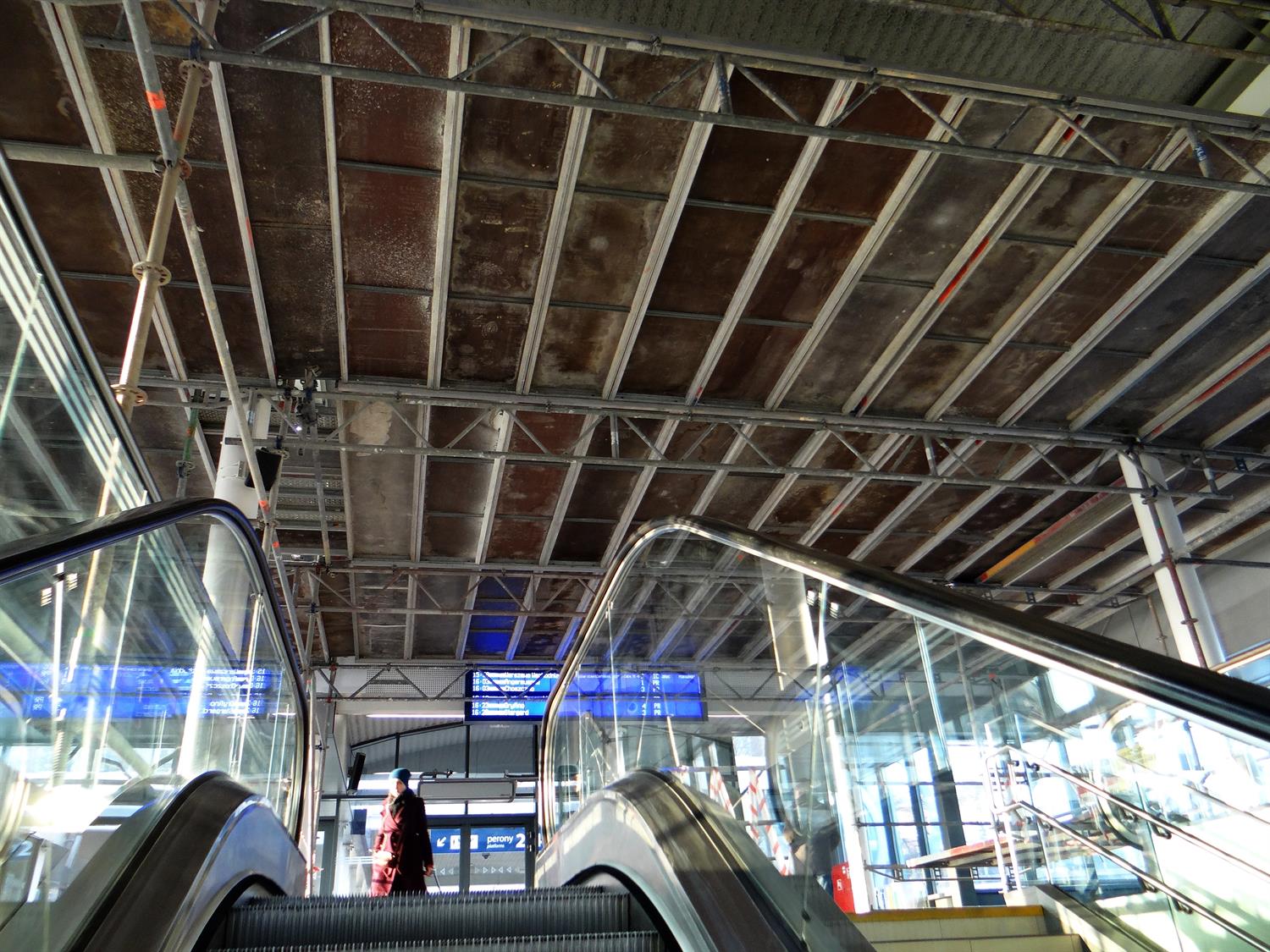Zdziwienie naszych Czytelników wywołały rusztowania i brak poszycia sufitu pomiędzy ruchomymi schodami a wyjściem z dworca na ul. Owocową. Okazało się, że to tylko naprawa.
