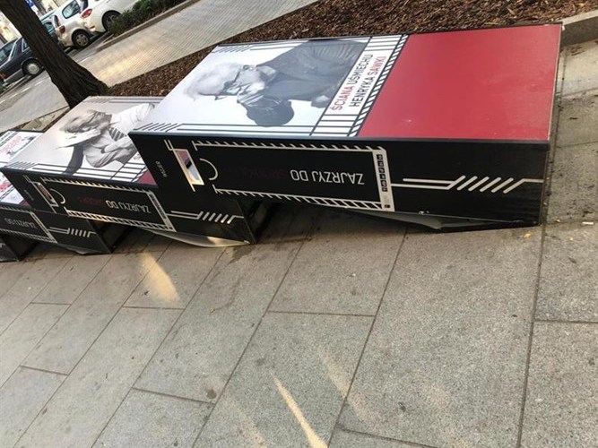 Policja poszukuje sprawców zniszczenia ulicznej instalacji z grafikami i zdjęciami dokonanego w nocy ze środy na czwartek w al. Wojska Polskiego w Szczecinie.