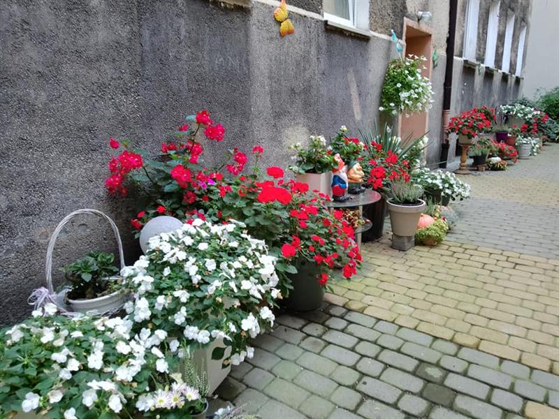 – Nasze podwórko zagospodarowałam jakieś siedem lat temu – opowiada Alina Madejewska. – Od tamtej pory zawsze coś przybywa: a to kwiaty, a to wystrój, a to kasztany…