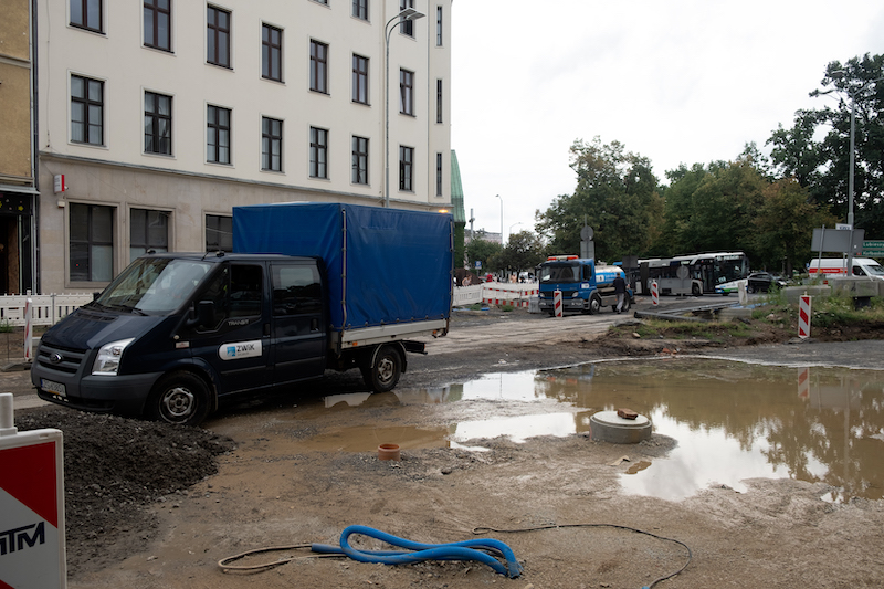 - Dokopaliśmy się do uszkodzenia i jest ono spore - mówi Tomasz Makowski. - Wody nie ma jedna narożna kamienica, podstawiliśmy beczkowóz. Cały czas pracujemy.