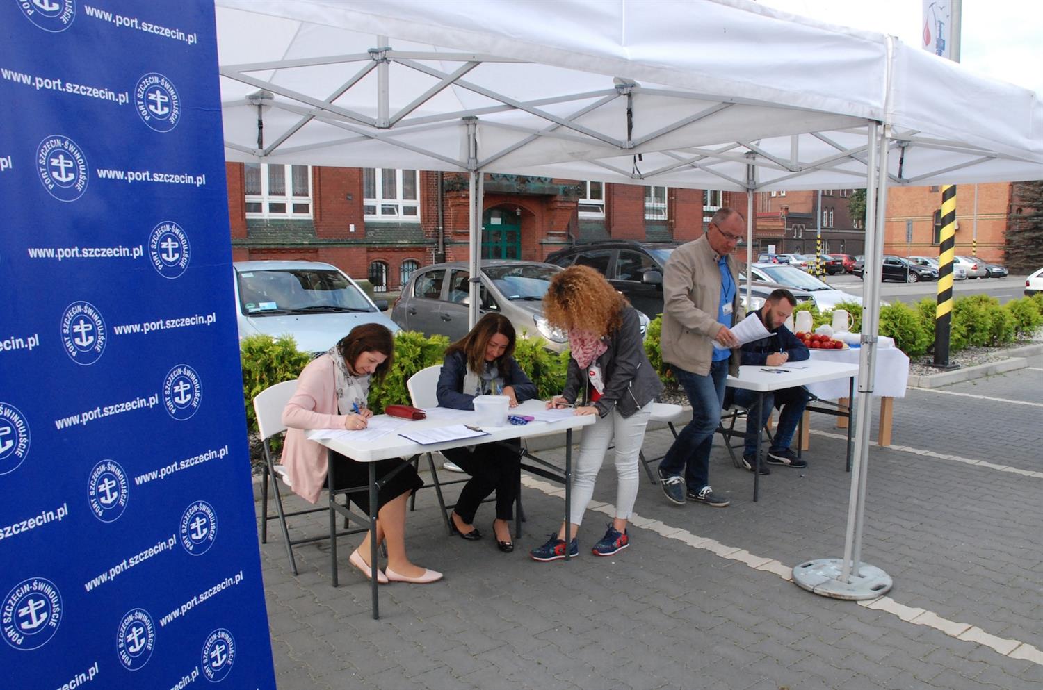 Krwiobus Regionalnego Centrum Krwiodawstwa i Krwiolecznictwa w Szczecinie stał na parkingu przy budynku głównym Zarządu Morskich Portów Szczecin i Świnoujście przez kilka godzin. Na jego pokładzie były cztery stanowiska do poboru krwi. Sama procedura jest prosta. Obejmuje wypełnienie specjalnej ankiety oraz badanie krwi. Jeżeli nie ma przeciwwskazań, jednorazowo oddaje się jej 450 ml. Po tym dawca otrzymuje słodki ekwiwalent oraz pamiątkowe gadżety.