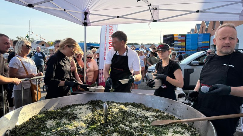 Dla wielu uczestników imprezy jej najważniejszym wydarzeniem jest jednak pokaz kulinarny i gotowanie dania rybnego na wielkiej patelni. Asystentem kucharza, który nakłada również potrawę wszystkim zgłodniałym, jest w tym roku Łukasz Dzioch, burmistrz Dziwnowa.
