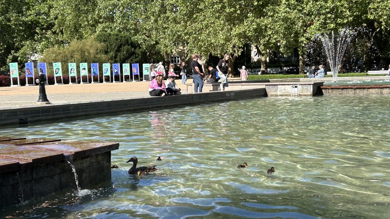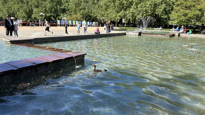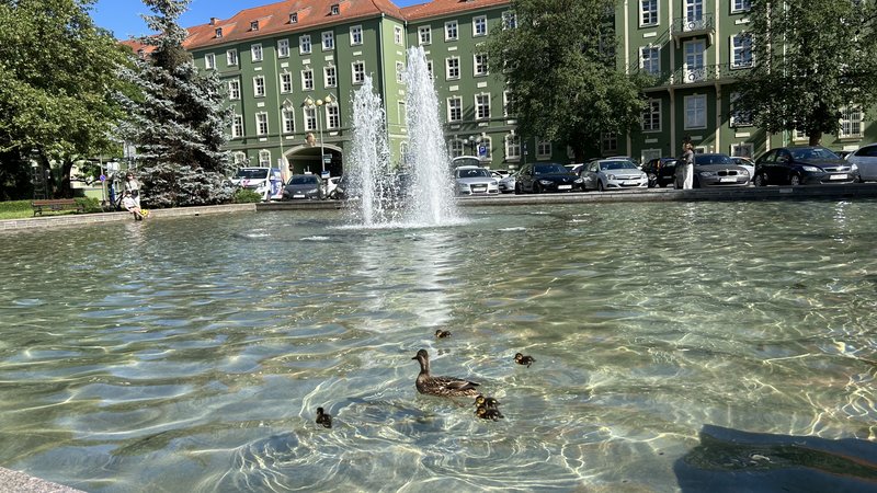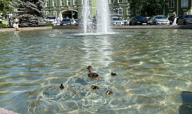 Olbrzymie poruszenie wśród osób przebywających na Jasnych Błoniach w Szczecinie w niedzielę wzbudziła kacza rodzina pływająca w fontannie, tzw. Bartłomiejce przed Urzędem Miasta.