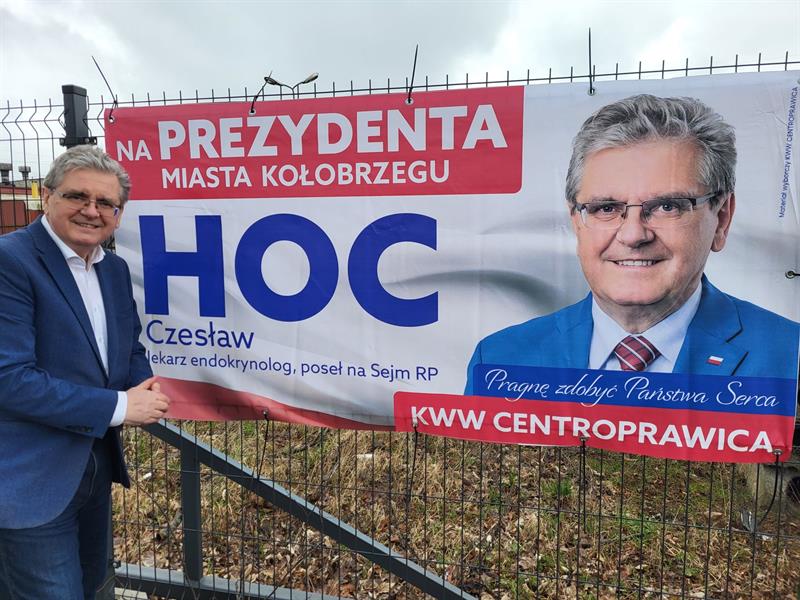 „W pokorze i pełnej odpowiedzialności podjąłem decyzję o kandydowaniu na zaszczytny Urząd Prezydenta Kołobrzegu z KWW Centroprawica (popierany przez Prawo i Sprawiedliwość). Moje marzenie to – zdobyć serca mieszkańców Kołobrzegu” – pisze na swoim profilu facebookowym Czesław Hoc.