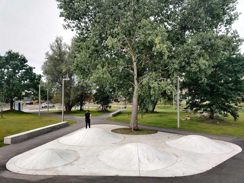 Teren, który tym razem zostanie zagospodarowany, ma 5 tys. m kw. Płyta betonowa z przeszkodami zajmie niemal 700 metrów. Oprócz tego powstaną alejki o przepuszczalnej nawierzchni i utwardzone dojścia do obiektu. Zagospodarowana zostanie zieleń, posadzone trawniki, przybędzie 14 nowych drzew. Ustawiona będzie też mała architektura w postaci stojaków na rowery, ławek, koszy na śmieci czy nawet poidełka. Poprowadzone zostaną także wszystkie przyłącza, w tym energetyczne. Pozwoli to na oświetlenie nowego skateparku oraz zamontowanie w nim monitoringu.