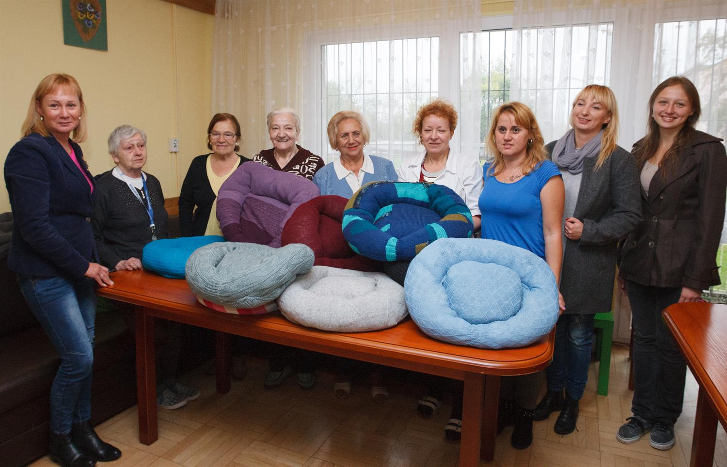 Do współpracy zostali zaproszeni mieszkańcy Domu Kombatanta i Pioniera Ziemi Szczecińskiej przy ul. Romera w Szczecinie i podopieczni placówek w jego strukturach - Dziennych Domów Pomocy Społecznej z ulic Potulickiej, Ściegiennego, Krasińskiego i Łukasińskiego. Pani Kinga na facebooku ogłosiła zbiórkę swetrów, kocyków, kołder, poduszek, z których będzie można szyć posłania dla psów. Odpowiedziały choszczeńskie szkoły, ale i osoby prywatne. W środę przywiozła kilka worków i kartonów z materiałami do DPS przy ul. Potulickiej. Nie spodziewała się, że na miejscu będą już czekać gotowe legowiska...