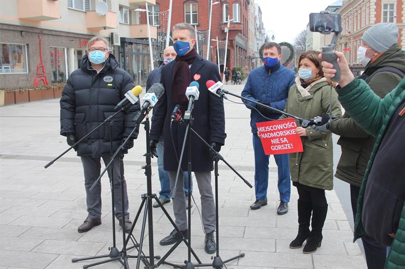 Konferencję prasową posłowie wraz z przedstawicielami świnoujskiej Rady Miasta zorganizowali na placu Wolności w Świnoujściu.