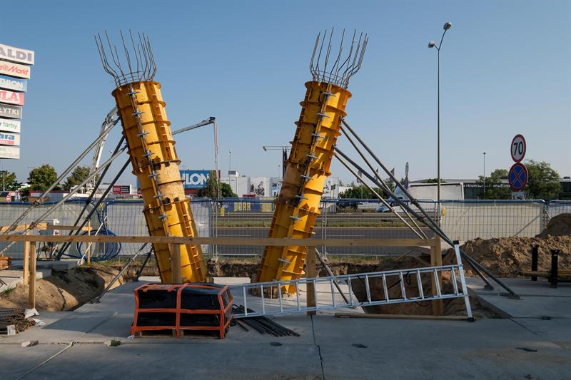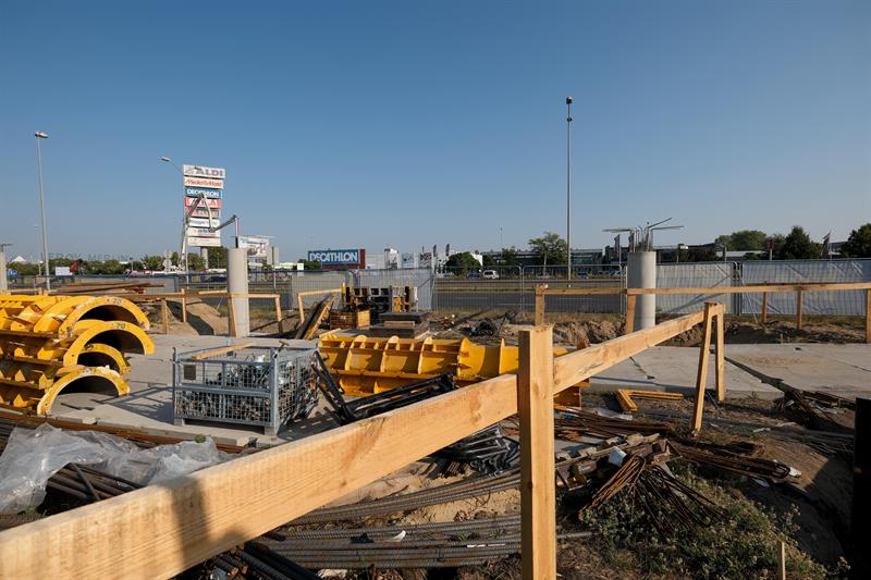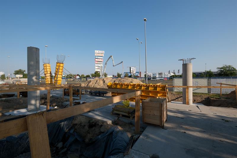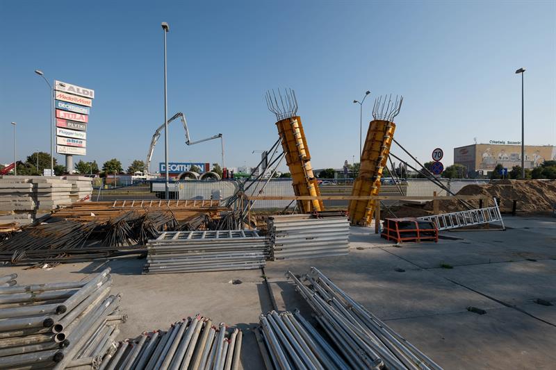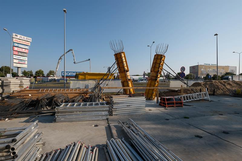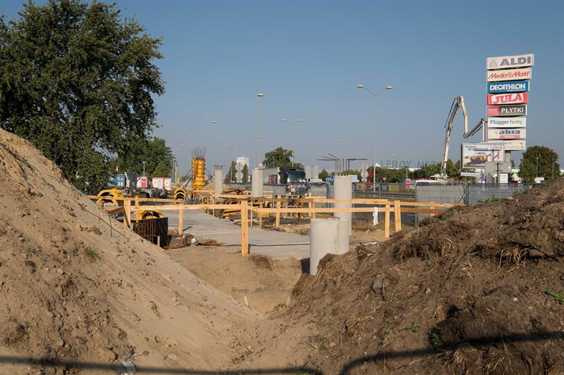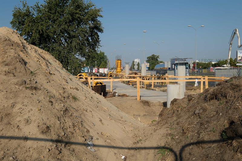 Mieszkańcy wyczekiwali tej inwestycji, a teraz mogą zobaczyć, jak powstaje nowa kładka nad ul. Struga. Od strony Outlet Parku trwają prace przy budowie filarów.