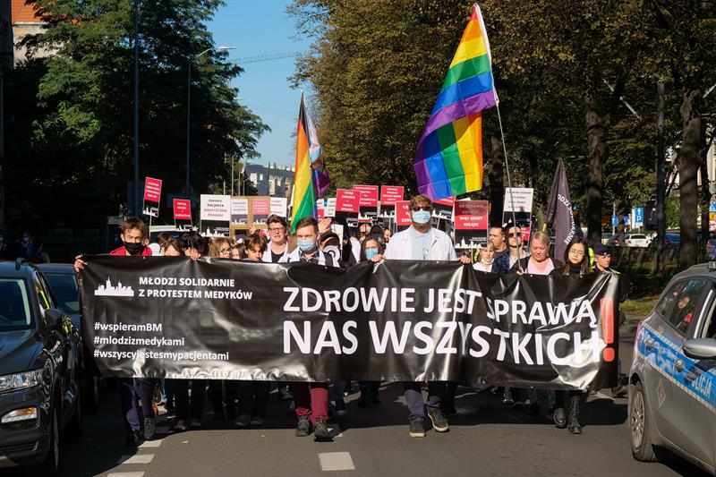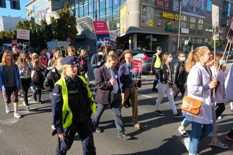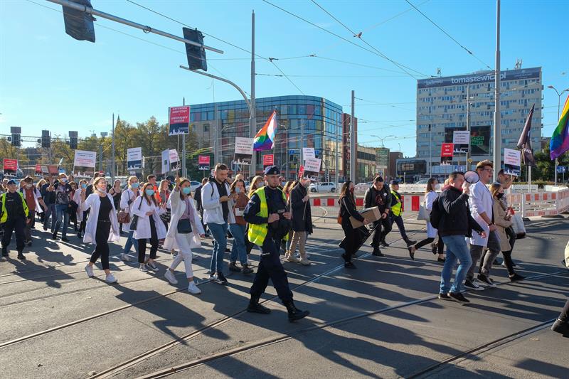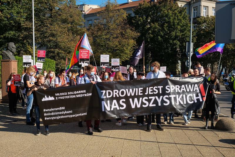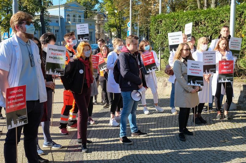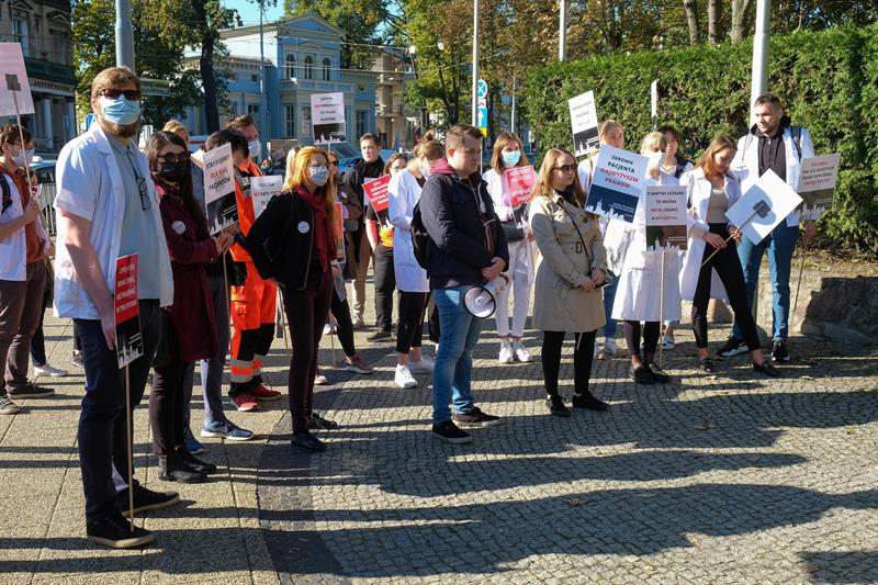 W całej Polsce - także w Szczecinie - w sobotę (9 października) odbyły się manifestacje, w których młodzi medycy oraz studenci kierunków medycznych wyrażali poparcie dla postulatów Białego Miasteczka, jakie od miesiąca funkcjonuje opodal Kancelarii Prezesa Rady Ministrów w Warszawie.