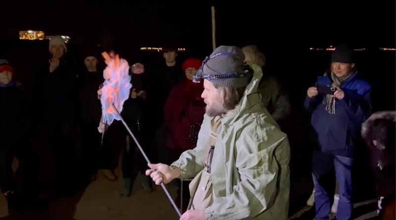 Eryk Popkiewicz nie tylko opowiadał o pozyskiwaniu i obróbce bursztynów od czasów średniowiecznych do dziś. Można było także zobaczyć, jak efektownie płonie bursztynowy pył, czy pójść za mistrzem do wody, by dowiedzieć się więcej. ©℗