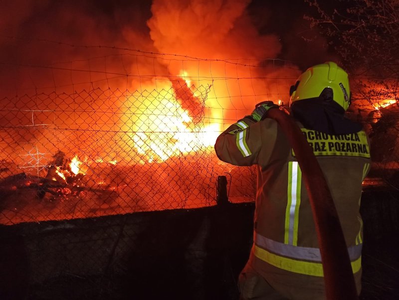 Płomienie błyskawicznie objęły cały magazyn wypełniony beczkami z jakąś łatwopalną substancją. Część z nich eksplodowała w płomieniach, stwarzając zagrożenie dla gaszących pożar strażaków, pozostałych zabudowań firmy, a nawet dla znajdujących się po drugiej stronie torów kolejowych budynków produkcyjnych firmy IKEA.