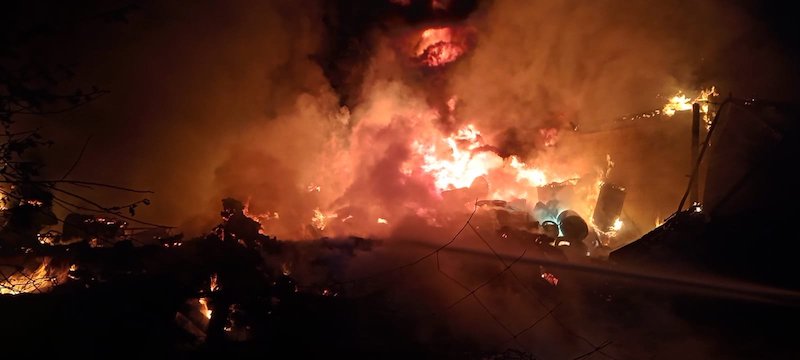 Pożar hali produkcyjnej przy ul. Tartacznej w Goleniowie wybuchł we wtorek (26 kwietnia) około godziny 22. W budynku składowane są farby, lakiery i opakowania plastikowe. Na miejscu z ogniem walczy 12 zastępów straży pożarnej.
