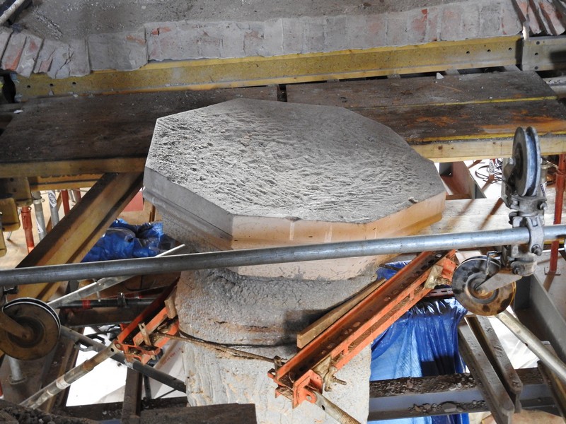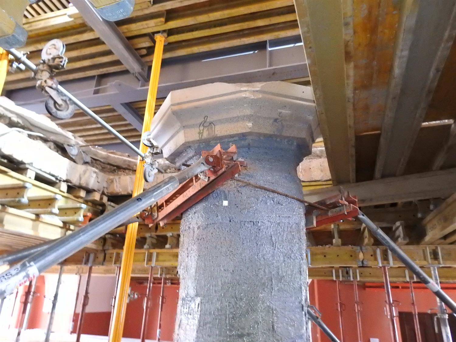 Na zdjęciu: Głowica kolumny z drugiego piętra po rozebraniu uszkodzonego fragmentu sklepienia, który się na niej opierał.