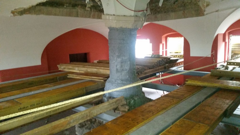 Przypomnijmy, że niespełna rok temu w Zamku, a konkretnie w północnym jego skrzydle, osunęły się po kolei jedna na drugą kolumny podpierające stropy. Ściślej mówiąc filary z wyższych pięter wcisnęły na niższe kondygnacje słupy stojące pod nimi. Siłą rzeczy zawaliły się też stropy podtrzymywane przez te kolumny. Ale nie wszystko spadło na ziemię. Część zawisła podparta kawałkami gruzu. Istniało więc niebezpieczeństwo kolejnych zawałów.