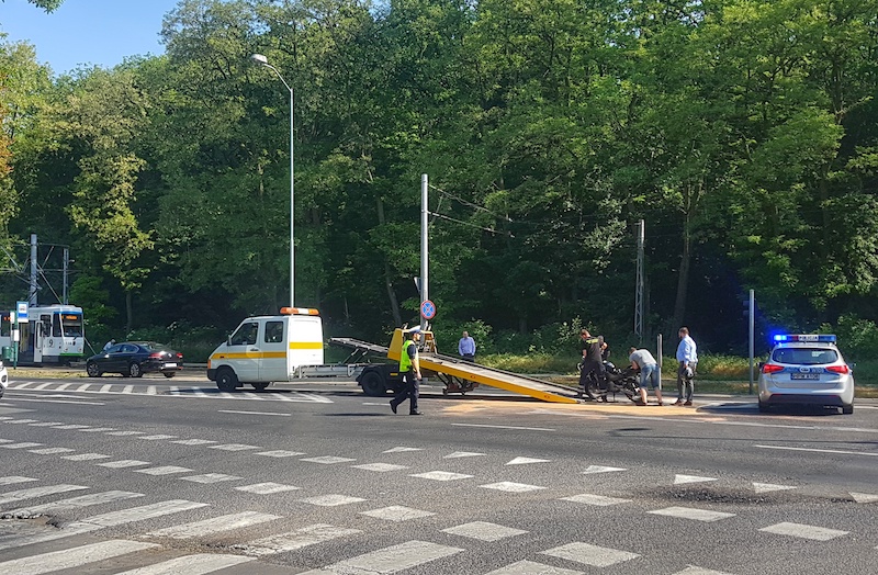 W poniedziałek rano (28 maja) przy skrzyżowaniu al. Wojska Polskiego z ul. Jarzyńskiego - naprzeciwko jednostki wojskowej - samochód osobowy potrącił motocyklistę, wymuszając pierwszeństwo. Spowodowało to spore utrudnienia w ruchu - tworzą się korki. Na miejsce przyjechała karetka. Motocyklistę zabrano do szpitala.