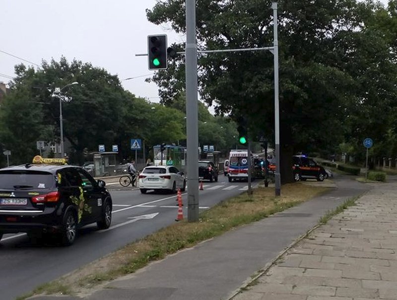 Wypadek miał miejsce przy skrzyżowaniu z ul. Tragutta. Mężczyźnie na miejscu pomocy udzielała załoga karetki pogotowia. W efekcie w kierunku Głębokiego przejezdny jest tylko jeden pas ruchu. Tworzą się korki.