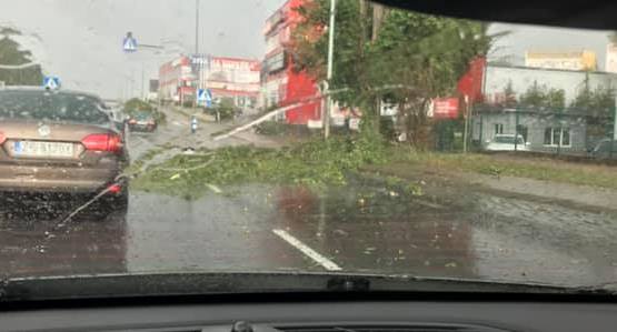Uwaga kierowcy - powalone drzewo blokuje jeden pas ruchu na ulicy Mieszka I - za Atrium Molo - w kierunku centrum.