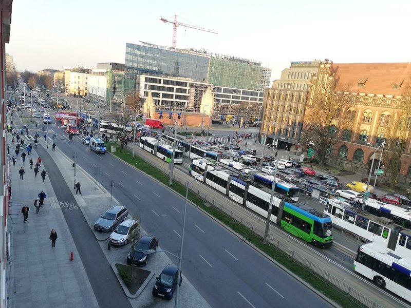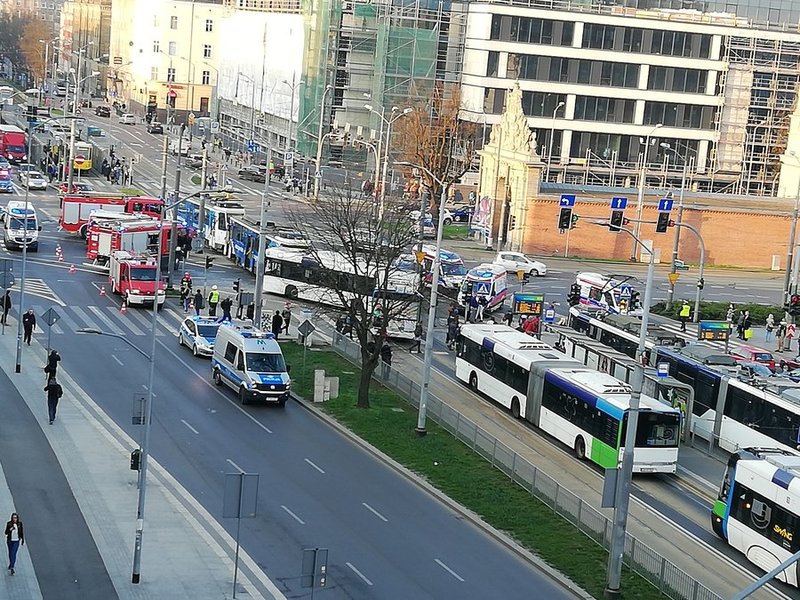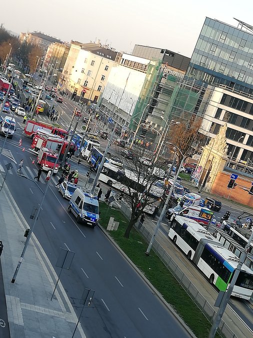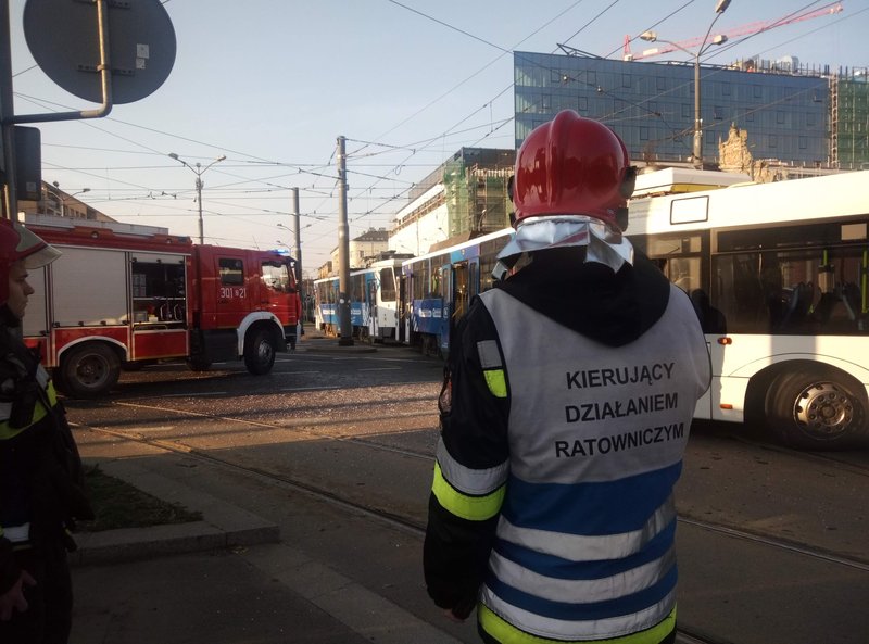 Na miejsce przyjechały karetki i trzy wozy strażackie. Zatrzymana została komunikacja miejska - zarówno autobusowa, jak i tramwajowa. Stanęły tramwaje linii nr 1, 2, 3, 7, 8, 9 i 10. Tworzyły się ogromne korki. Ruchem kierowała policja. Uszkodzony tramwaj został już odholowany, a ruch w tym miejscu przywrócono.