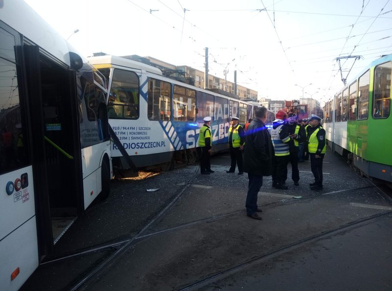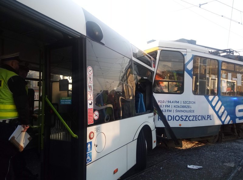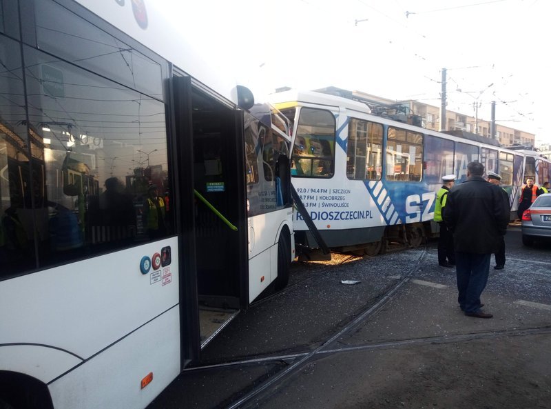 Do zderzenia autobusu i tramwaju doszło w piątek rano na skrzyżowaniu przy Bramie Portowej w centrum Szczecina. Rannych zostało jedenaście osób, w tym jedna ciężko. Wśród nich jest prowadząca tramwaj. Poszkodowanych zabierają karetki pogotowia ratunkowego.