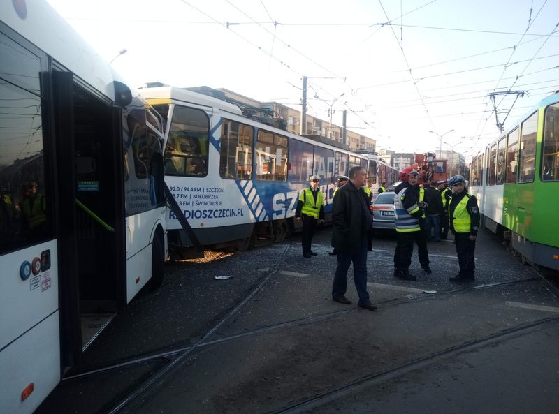 Do zderzenia autobusu i tramwaju doszło w piątek rano (5 kwietnia) na skrzyżowaniu przy Bramie Portowej w centrum Szczecina. Rannych zostało jedenaście osób, w tym jedna ciężko. Ruch przywrócono ok. g. 9:30.