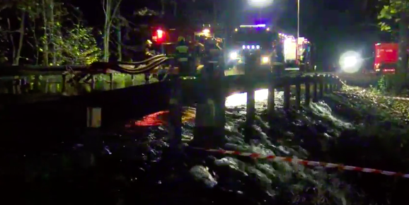 Do powodzi w okolicach Łobza doszło w niedzielę (6 listopada) wieczorem. Jak informuje straż pożarna, najprawdopodobniej doszło do przerwania wału w okolicznym stawie i w ten sposób woda w przepływającym nieopodal strumyku spiętrzyła się i zalewa miejscowość Świętoborzec.