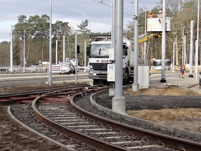W kolejnych etapach inwestycji w rejon, gdzie ma powstać wspomniane rondo, z robotami przeniosą się drogowcy. Na urządzenie czeka także nowy parking leśny naprzeciwko jeziora, gdzie do tej pory oprócz części prac w pasie pobocza przy chodniku i ścieżce rowerowej, wykonany został zbiornik retencyjny. Tam na dokończenie czekają wciąż prace przy nowym fragmencie jezdni wytyczonym wzdłuż leśnej skarpy. Z kolei na samej pętli powstanie jeszcze budynek z poczekalnią dla pasażerów oraz pomieszczeniami zaplecza socjalnego dla kierowców i motorniczych.
