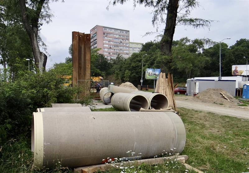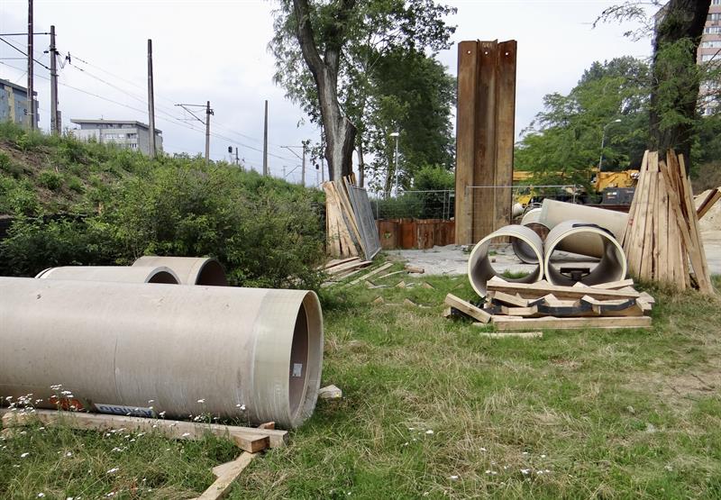 Tam pomiędzy kompleksem garaży teraz trwają prace ziemne, a następnie wybudowany właśnie kolektor zostanie „wpięty” do istniejącego i eksploatowanego kanału ogólnospławnego o dużej średnicy. Tym samym ścieki burzowe z okolic ul. Wilczej trafiać będą do pompowni przy ul. 1 Maja, przez którą będą dalej tłoczone do oczyszczalni ścieków Pomorzany. ©℗