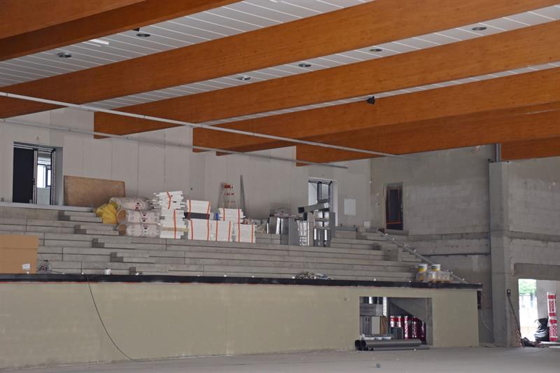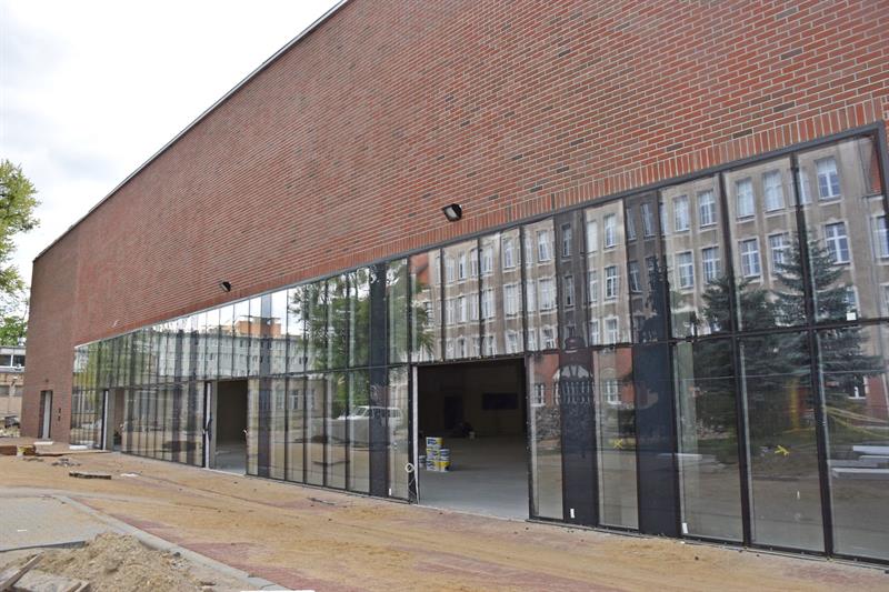 W najbliższych dniach rozpocznie się montaż parkietu głównej sali gimnastycznej. Jednocześnie w budynku prowadzone są prace wykończeniowe.