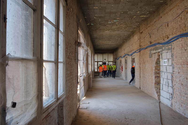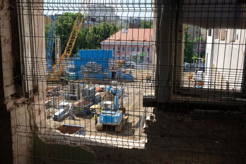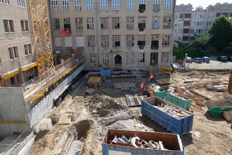 – W zadaniu pierwszym (przebudowa budynku przy al. Piłsudskiego – red.) kończone są już roboty rozbiórkowe. Wywieźliśmy ponad 3 tysiące metrów sześciennych odpadów. Trwają także prace konstrukcyjne, wbudowaliśmy 1500 metrów sześciennych betonu. Prowadzone są również roboty murowe. Budynek przygotowany jest do zamknięcia, czyli do montażu stolarki okiennej, wykonania pokrycia dachu. Przygotowujemy się do robót elewacyjnych – wyjaśnia Marcin Szymborski.