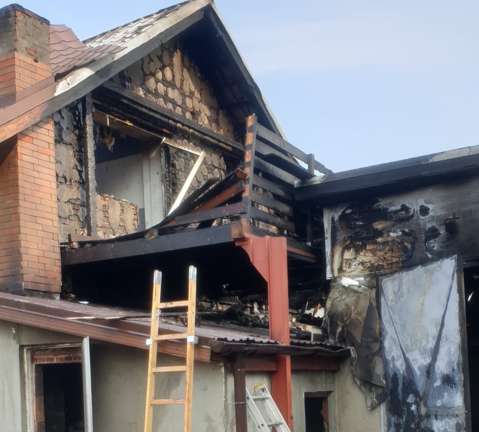 Strażacy ugasili pożar, a następnie rozebrali spalony dach i przykryli go plandeką.