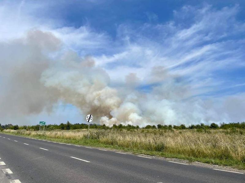 Początkowo podejrzewano, że pożar objął kombajn, który pracował na polu. Ta informacja nie została na szczęście potwierdzona. Spłonęło jednak 40 ha ścierniska i ok. 0,5 ha zagajnika.