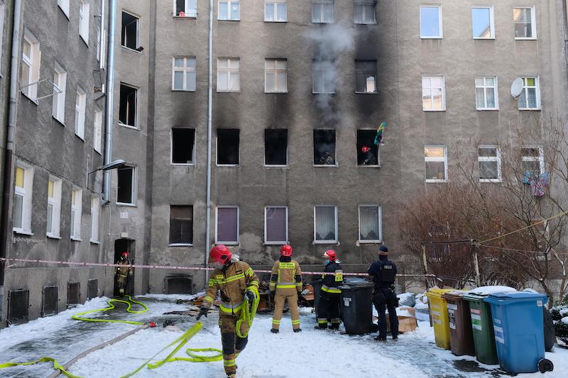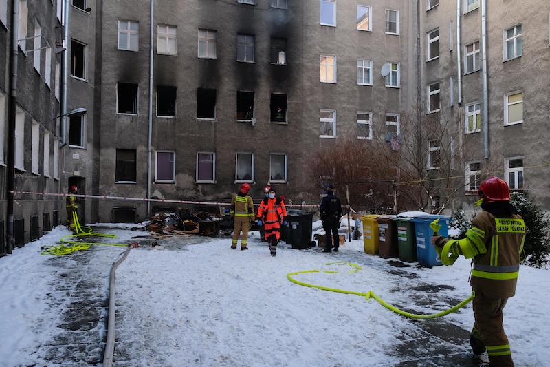 Na miejsce przybyło pięć zastępów straży pożarnej, która musi jeszcze wykonać pomiary w pozostałych mieszkaniach na obecność tlenku węgla.