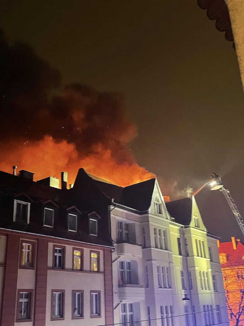 Powierzchnia pożaru to 200 metrów kwadratowych. Jedno mieszkanie na poddaszu zostało całkowicie spalone, inne są zalane.