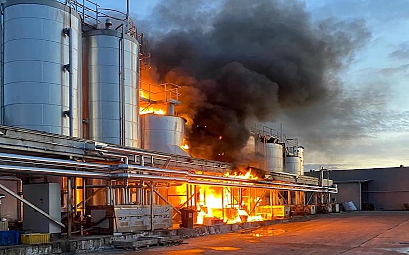 Z zakładu ewakuowano załogę, wyłączono zasilanie.