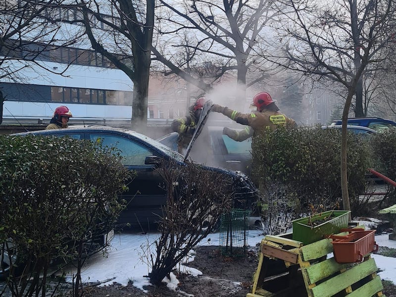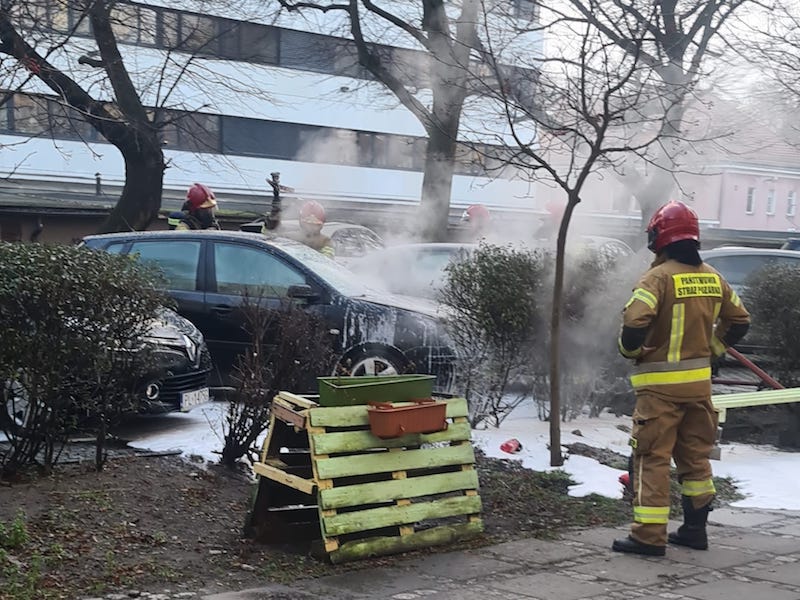 Do pożaru samochodu osobowego doszło w poniedziałek 3 lutego przed godz. 9 na podwórku przy ul. Piłsudskiego w Szczecinie, Na miejscu interweniuje zastęp straży pożarnej.
