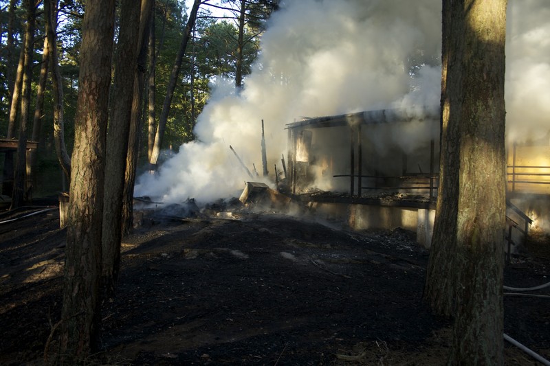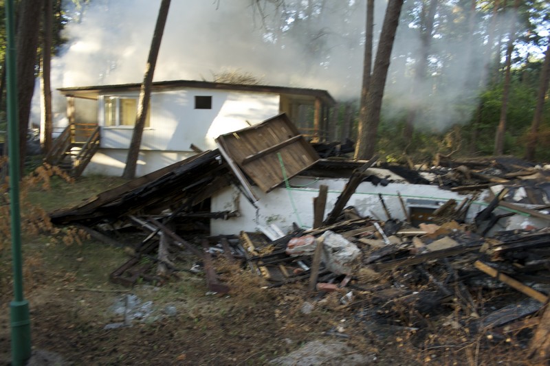 Jak powiedzieli mi strażacy, podobny pożar był 15 czerwca br., kiedy zapalił się inny z domków, sąsiadujący z płonącym dzisiaj. Tamten spłonął doszczętnie. Dym było widać aż w Gryficach.