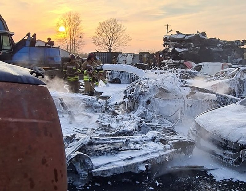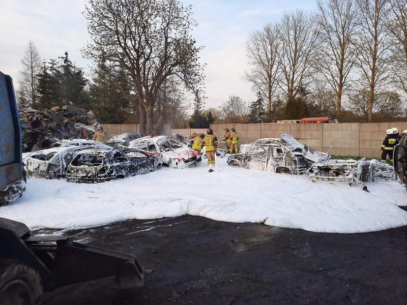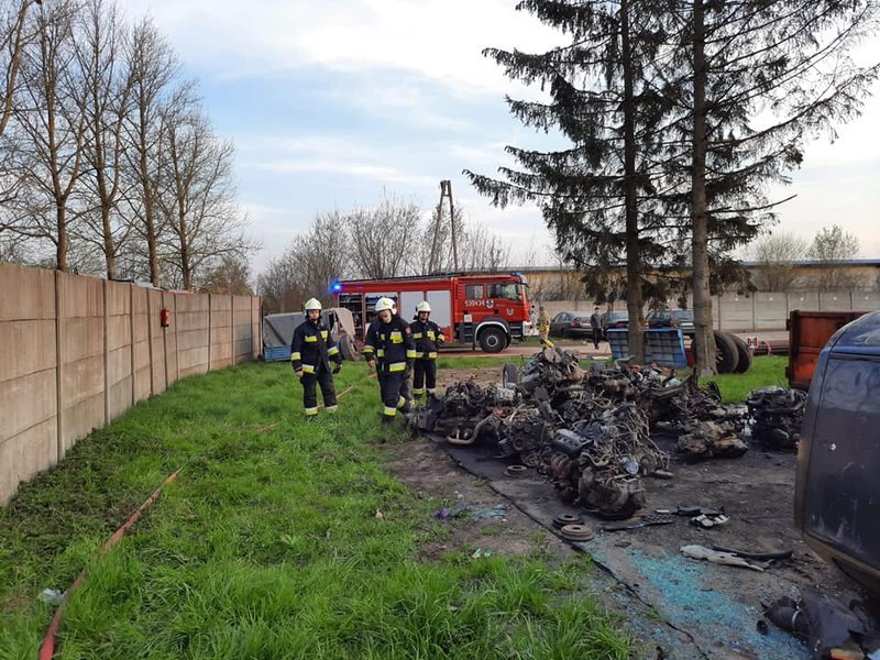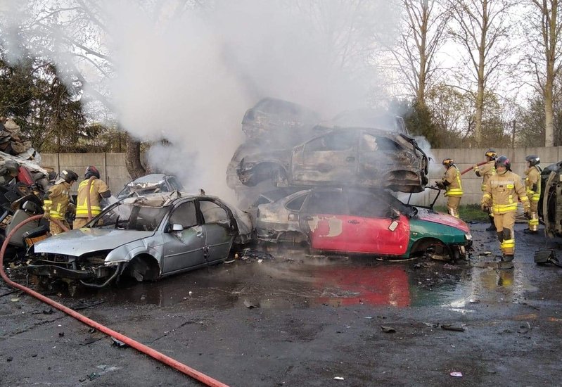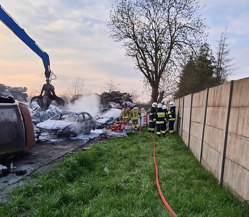 W środę wieczorem, 28 kwietnia, strażacy zmagali się z ogniem w Dobrzanach, gdzie był pożar na stacji demontażu pojazdów.