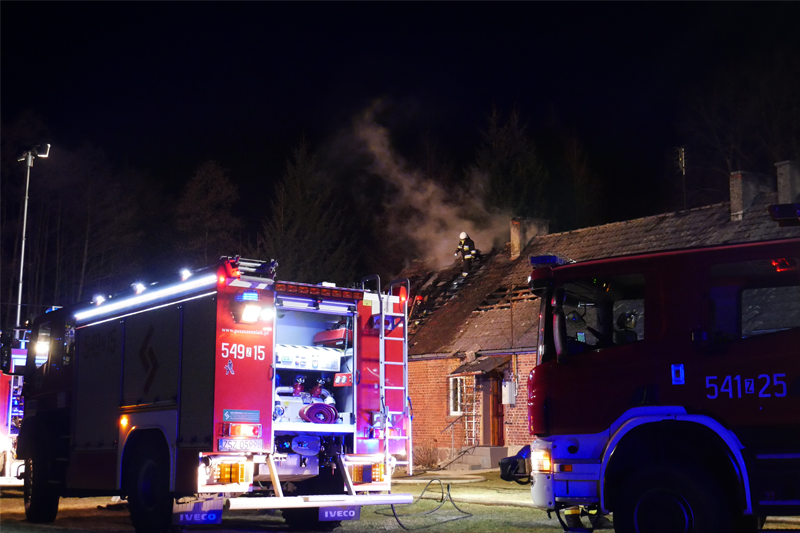 Późnym wieczorem w niedzielę, w Jeziorkach w gminie Barwice dwie rodziny straciły dach nad głową, gdy zapaliło się poddasze czterorodzinnego budynku. Ogień strawił dach mieszkania na poddaszu, a mieszkanie na parterze zostało zalane woda podczas akcji gaśniczej. Ogień zauważyli sąsiedzi i chcieli sami gasić. Niestety, znajdujący się kilkanaście metrów od budynku hydrant był niesprawny i nie mogli podłączyć do niego węży. Straty są duże, bo straż przyjechała po około 20 minutach, a ogień w tym czasie zajął część dachu. Ludzie nie ucierpieli.