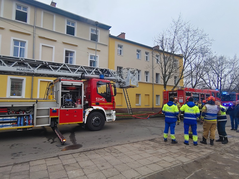 Ogień pojawił się w mieszkaniu na parterze budynku. Mieszka w nim samotnie starszy mężczyzna.