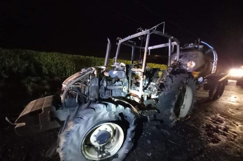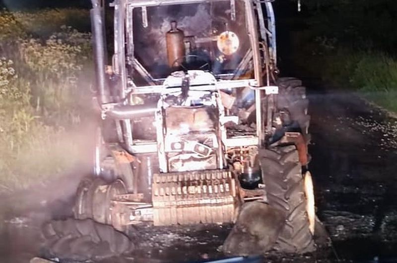- Drogą jechał ciągnik rolniczy, który zaczął się palić - poinformowali internauci Stoją!Stargard. - Było słychać wybuch, to wystrzeliły opony. Kierowca, któremu udało się uciec z ciągnika zadzwonił pod numer 112. Był w szoku, ale nic mu się nie stało. Ciągnik doszczętnie spłonął, ciągnął za sobą cysternę z wodą.