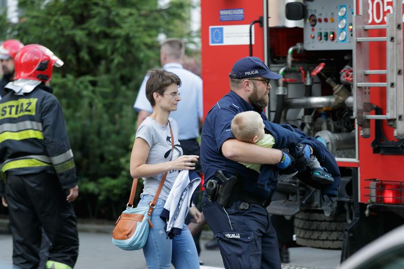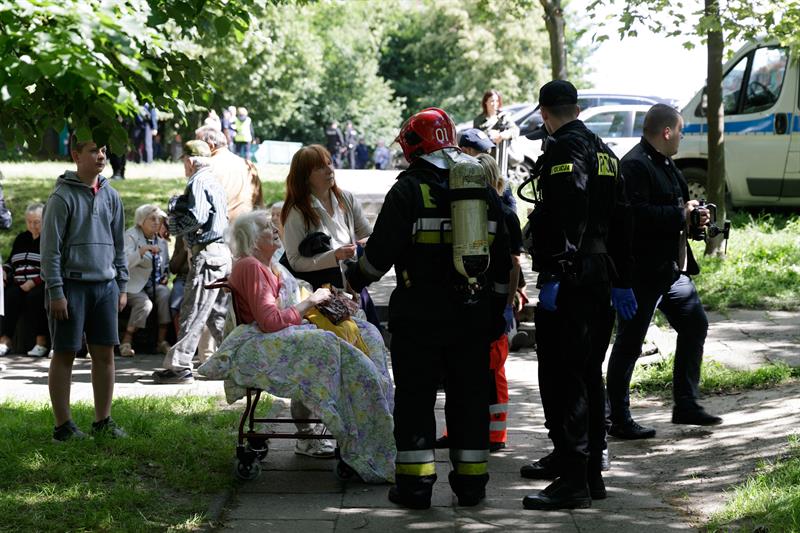 W 10-piętrowym budynku przy ul. Ofiar Oświęcimia jest 176 mieszkań. Na każdej klatce mieszka 17 rodzin. Strażacy musieli dotrzeć do każdego mieszkania wyprowadzając pozostałe w nich osoby. Było przedpołudnie. W domach najczęściej przebywali starsi i chorzy. Niepełnosprawnych ratownicy wynosili razem z fotelami.