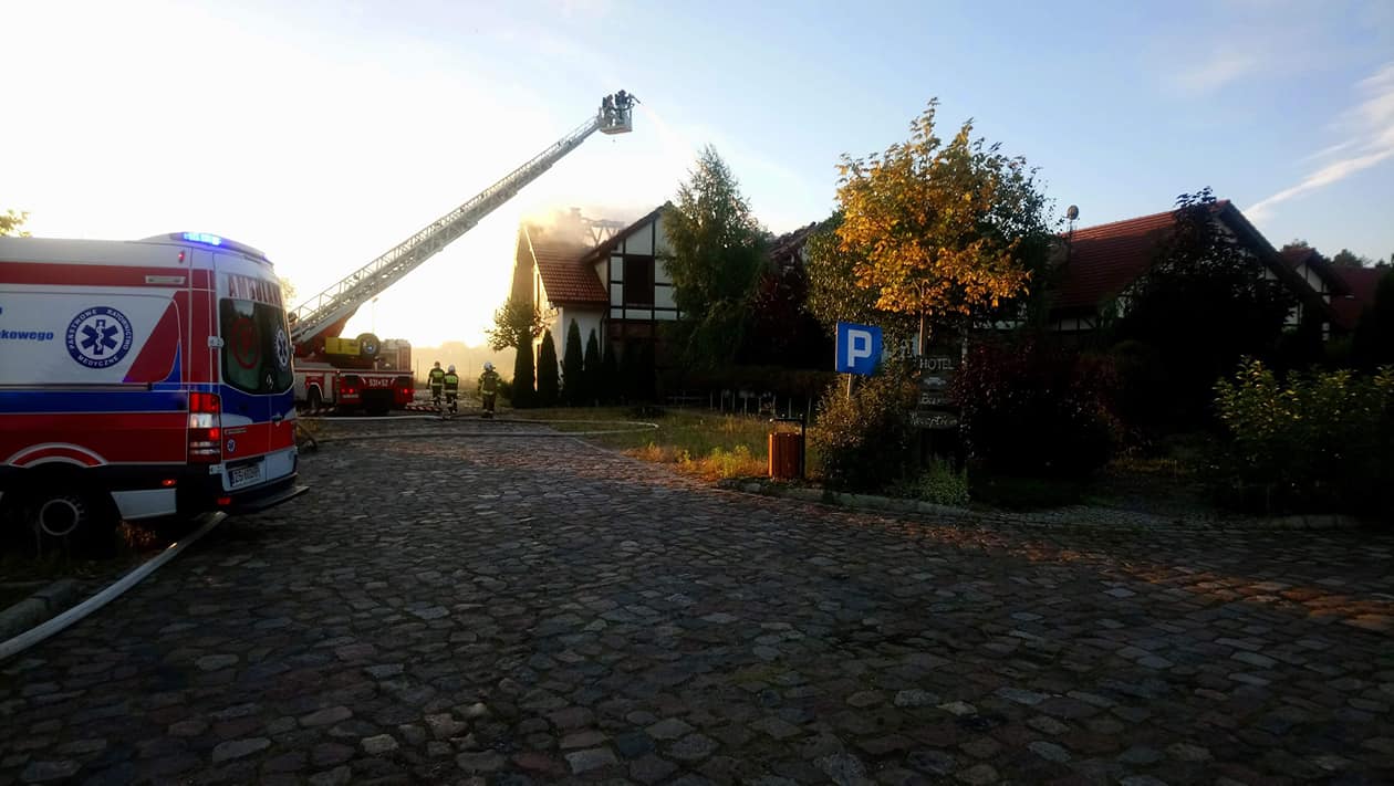 Do akcji skierowano cztery zastępy straży pożarnej ze Stargardu, jeden ze Szczecina i pięć zastępów Ochotniczych Straży Pożarnych z pobliskich jednostek. Ogień był bardzo agresywny; w niedługim czasie objął około 290 metrów kwadratowych poszycia dachowego hotelu.