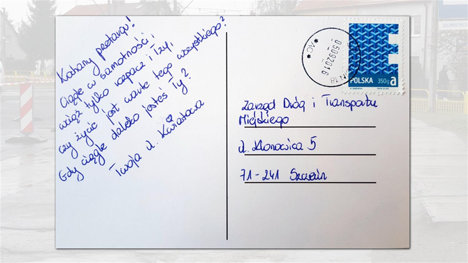 Tego jeszcze nie było! Do Zarządu Dróg i Transportu Miejskiego właśnie przesłano kartkę z pozdrowieniami z Gumieniec. Podpisaną: „Twoja ul. Kwiatowa".