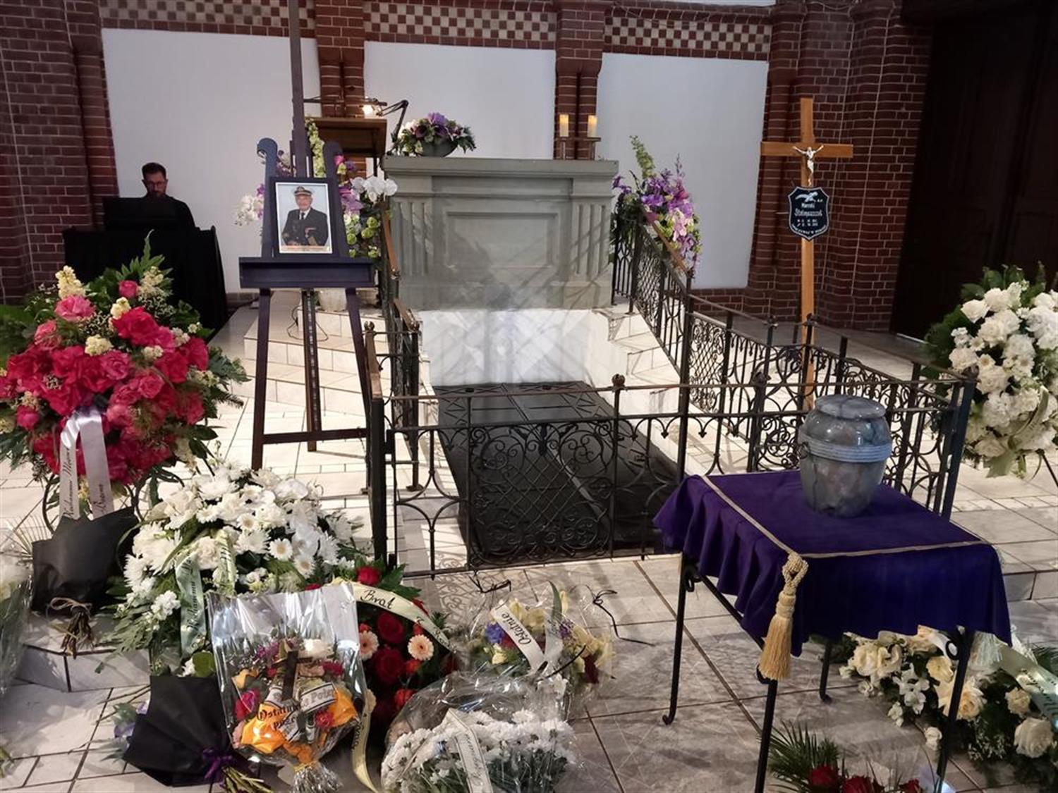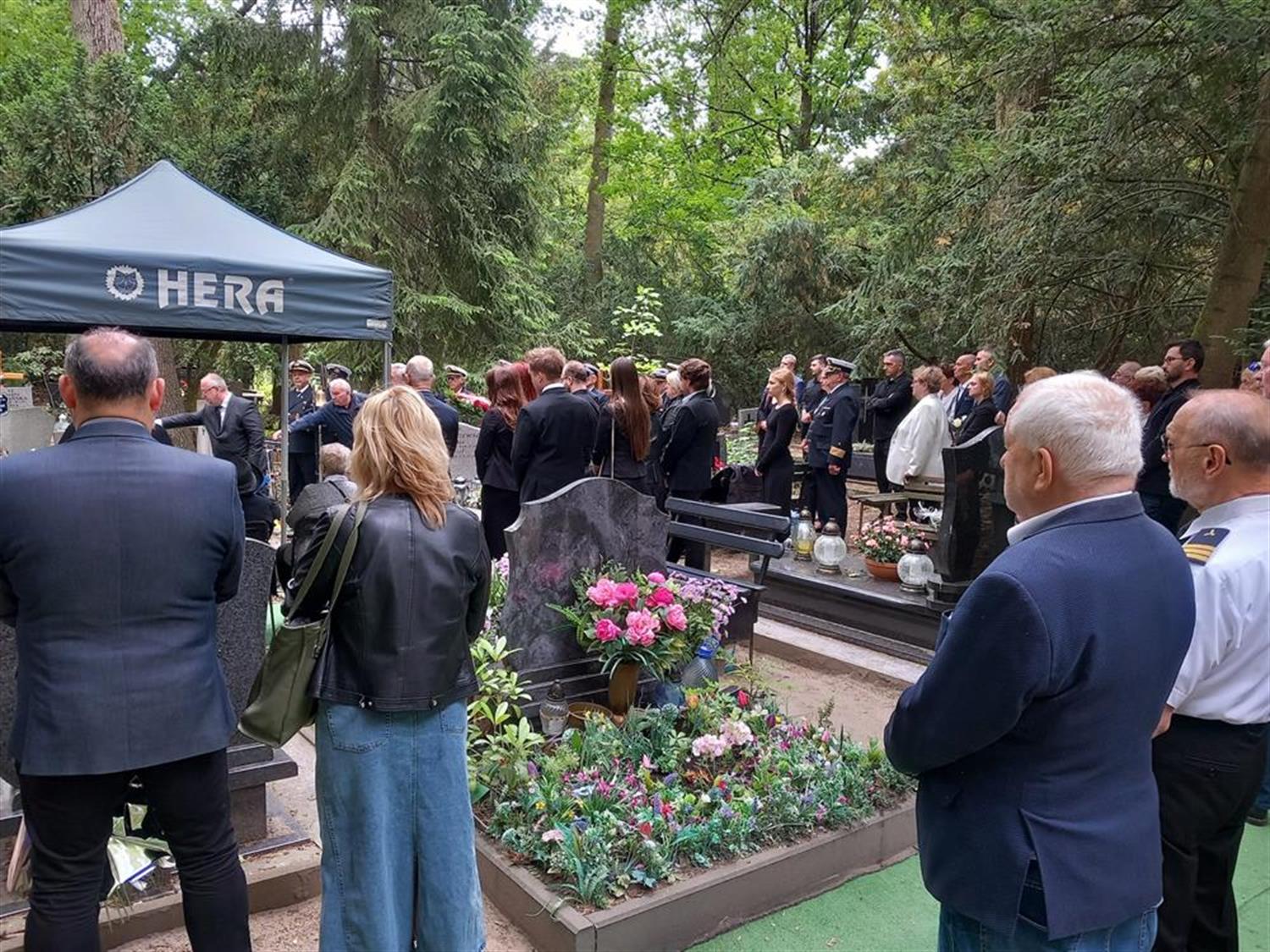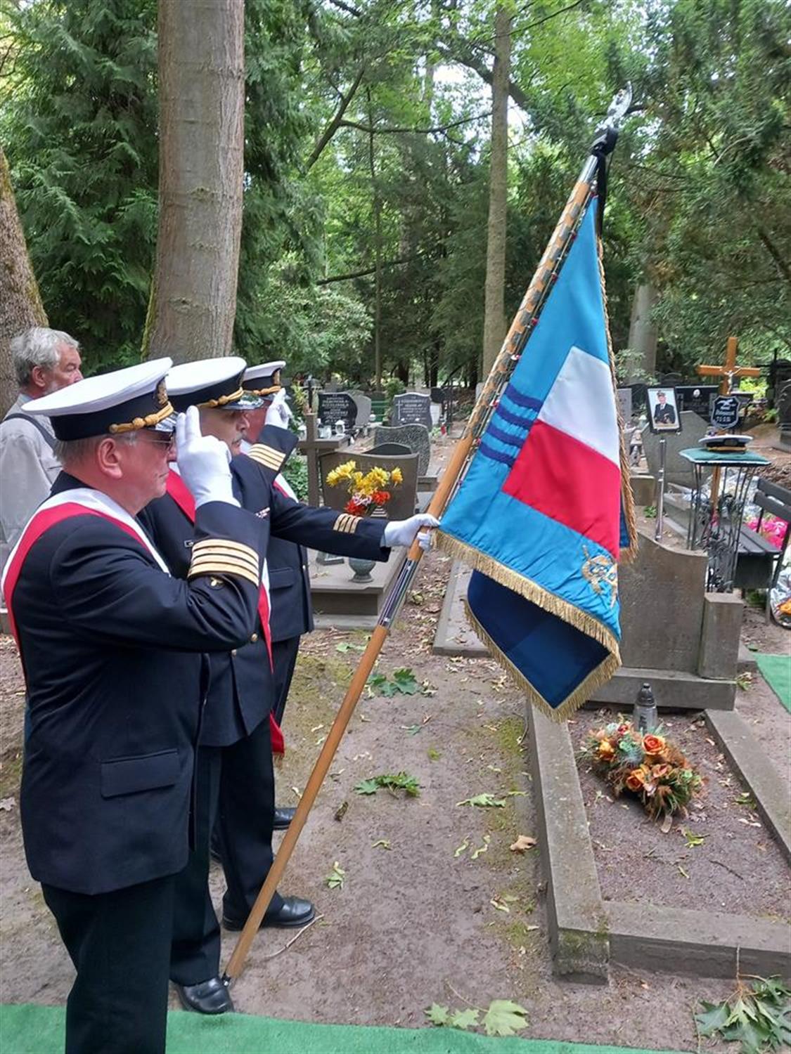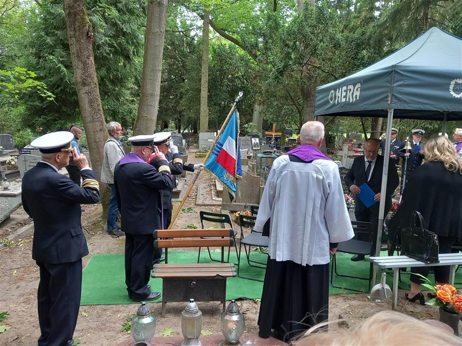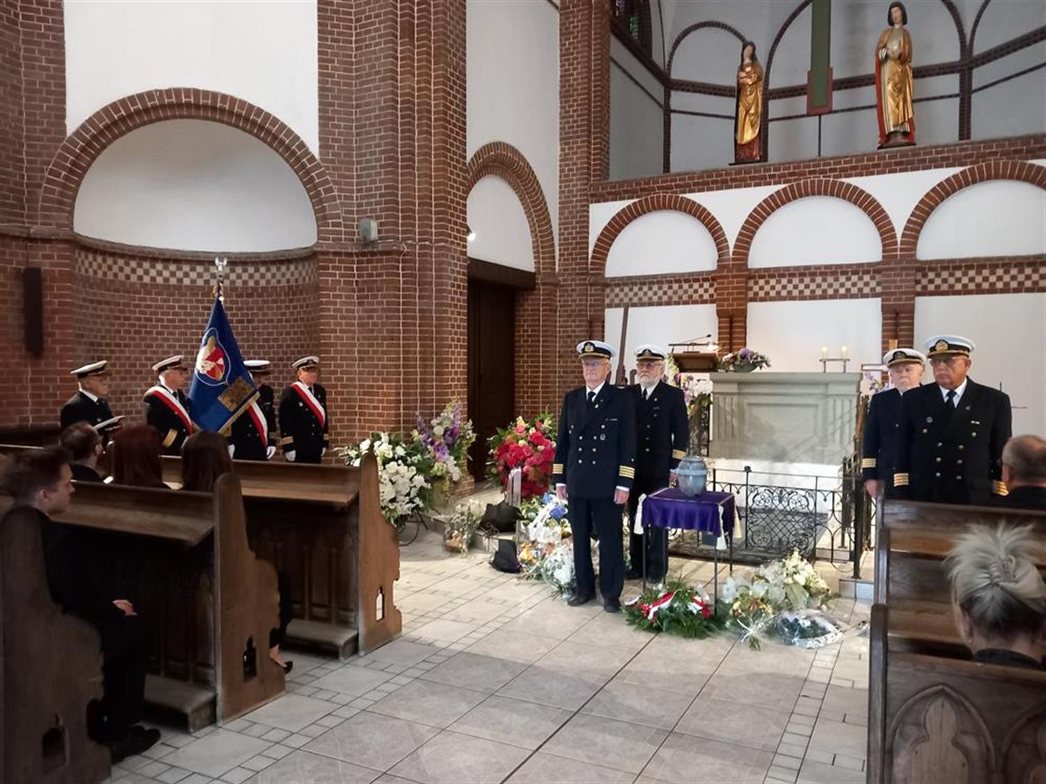 Ceremonię pogrzebową poprowadził ks. kanonik Ryszard Kamiński, kapelan szczecińskiego Stowarzyszenia Starszych Oficerów Mechaników Morskich. W uroczystości wzięło udział wielu ludzi morza, w tym kolegów zmarłego należących do SSOMM. Nie zabrakło pocztu sztandarowego tej organizacji. Sztandar był ozdobiony kirem.